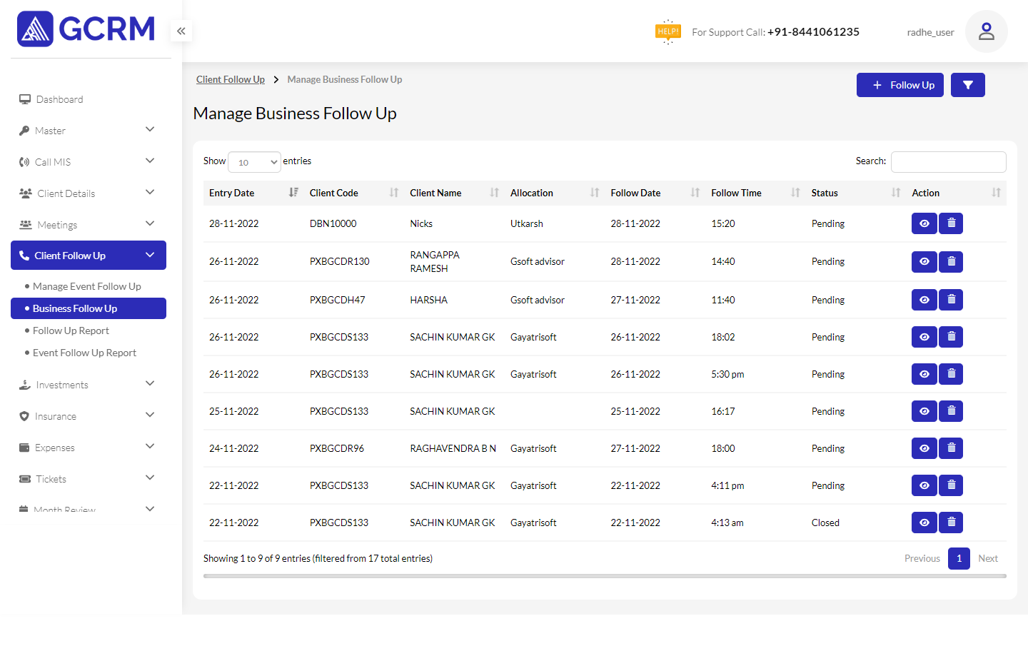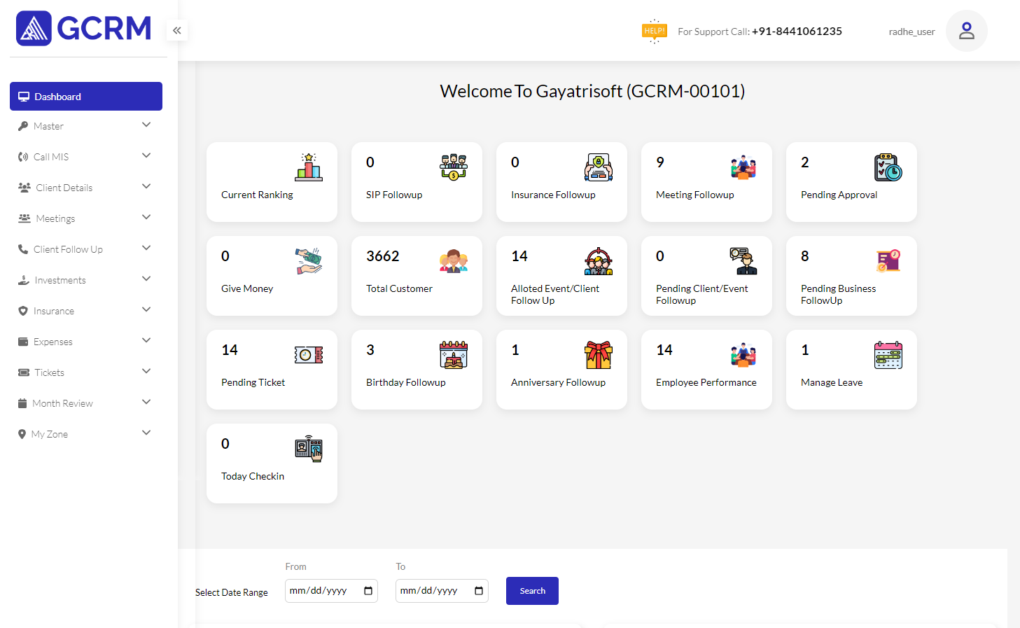 GCRM's meeting management system allows you to manage different activities such as prospect list generation, assigning prospects to meetings, and scheduling sales meetings, etc.