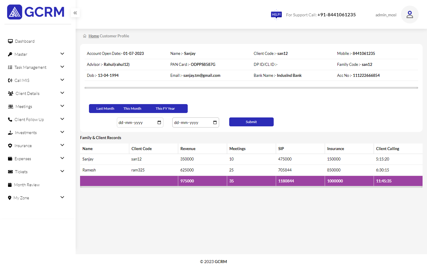 GCRM helps to manage different types of investments like MF Equity Lumpsum, MF Debit Lumpsum, IAP, PMS, Sip and more.